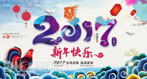 一縷豪情,灑向天際,幸運點點滴滴;一腔熱血,奔赴事業(yè),輝煌燦燦爛爛;一絲笑容,渲染生活,幸福甜甜蜜蜜;一聲祝福,寄往新年,工作順順利利!新春賀喜!佛山市順德區(qū)德愷機械有限公司全體員工祝各位同仁、合作伙伴、社會各界朋友們2017新年快樂!